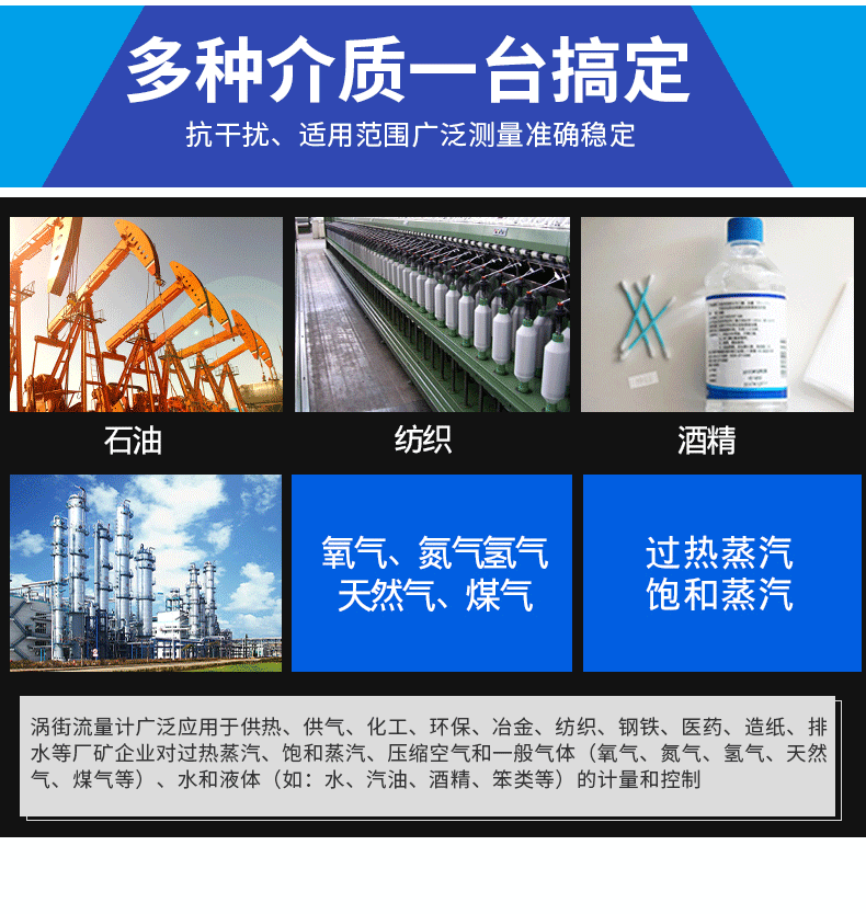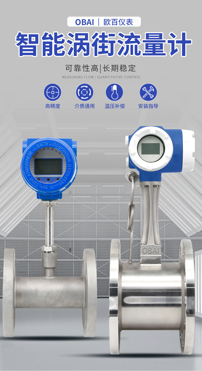 智能渦街流量計(jì)主要用于工業(yè)管道介質(zhì)流體的流量測(cè)量,如氣體、液體、蒸氣等多種介質(zhì)。特點(diǎn)是壓力損失小,量程范圍大,精度高,在測(cè)量工況體積流量時(shí)幾乎不受流體密度、壓力、溫度、粘度等參數(shù)的影響。無可動(dòng)機(jī)械零件,因此智能渦街流量計(jì)可靠性高,維護(hù)量小,儀表參數(shù)能長(zhǎng)期穩(wěn)定。采用壓電應(yīng)力式傳感器,可靠性高,可在-20℃~+450℃的工作溫度范圍內(nèi)工作。有模擬標(biāo)準(zhǔn)信號(hào),也有數(shù)字脈沖信號(hào)輸出,容易與計(jì)算機(jī)等數(shù)字系統(tǒng)配套使用,是一種比較先進(jìn)、理想的流量?jī)x表。